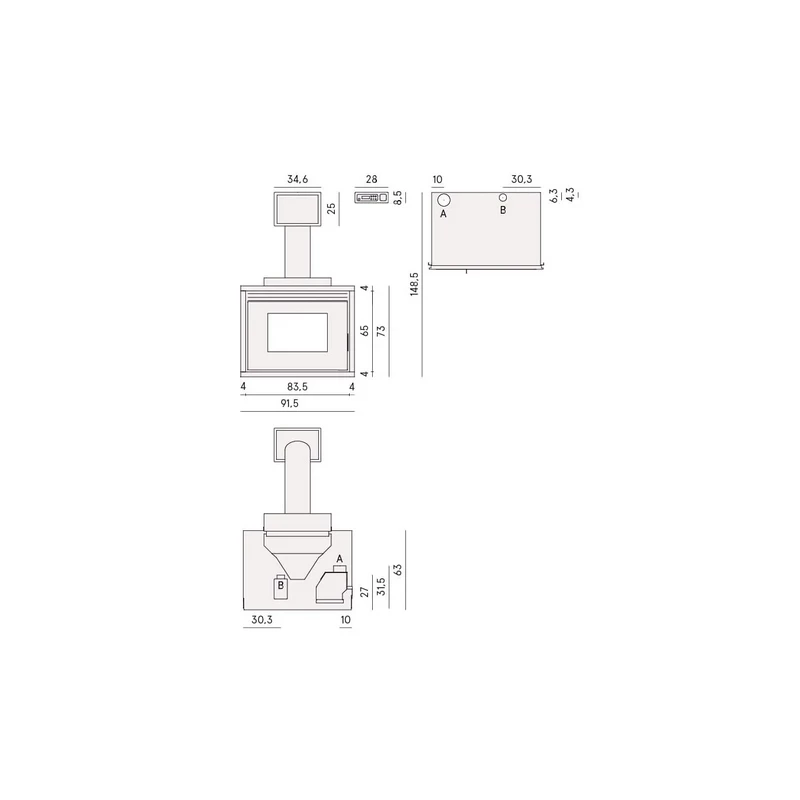 Der belüftete Hydro Kamineinsatz Saturno 16 ist modern und minimalistisch gehalten. Der Pelletkamineinsatz ist mit einem Hydraulik- Bausatz ausgestattet, einer ausrichtbarer Pelletklappe und einer frontalen Ventilation für die optimale Luftverteilung.